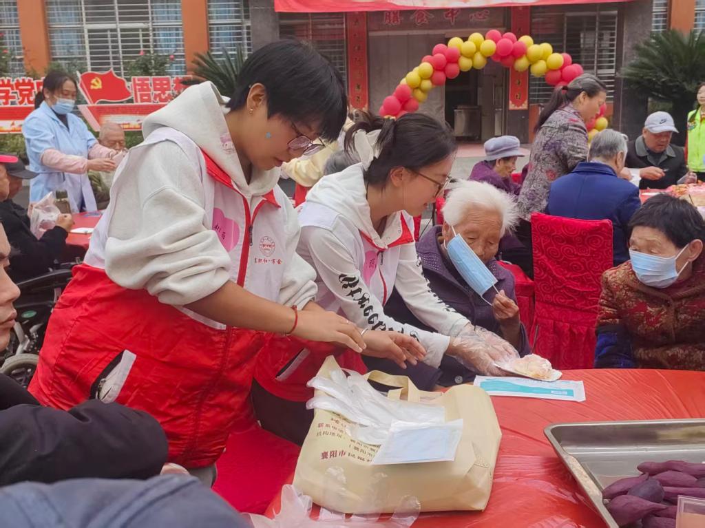 10月29日下午14时,校红十字会“襄职情 医路行”服务队参加了由襄州区民政局、襄州区社会福利院、襄阳民福社工组织的以“爱在深秋 情暖重阳”为主题的志愿服务活动,在院内20名志愿者为30余位老人们送上了一份充满温情与陪伴的重阳节礼物。