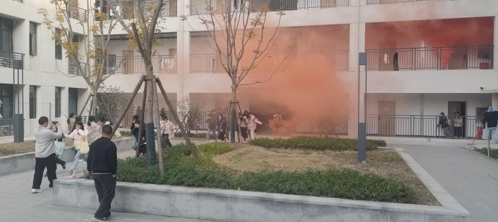“呜~~~呜~~~”12月11日,急促的消防警报声在高铁南路校区医学院馨园3栋学生公寓响起。模拟火场中,师生们严格遵循“弯腰低姿、湿巾掩鼻”的规范,仅用60秒便完成全员安全撤离,展现了高效的应急逃生能力。