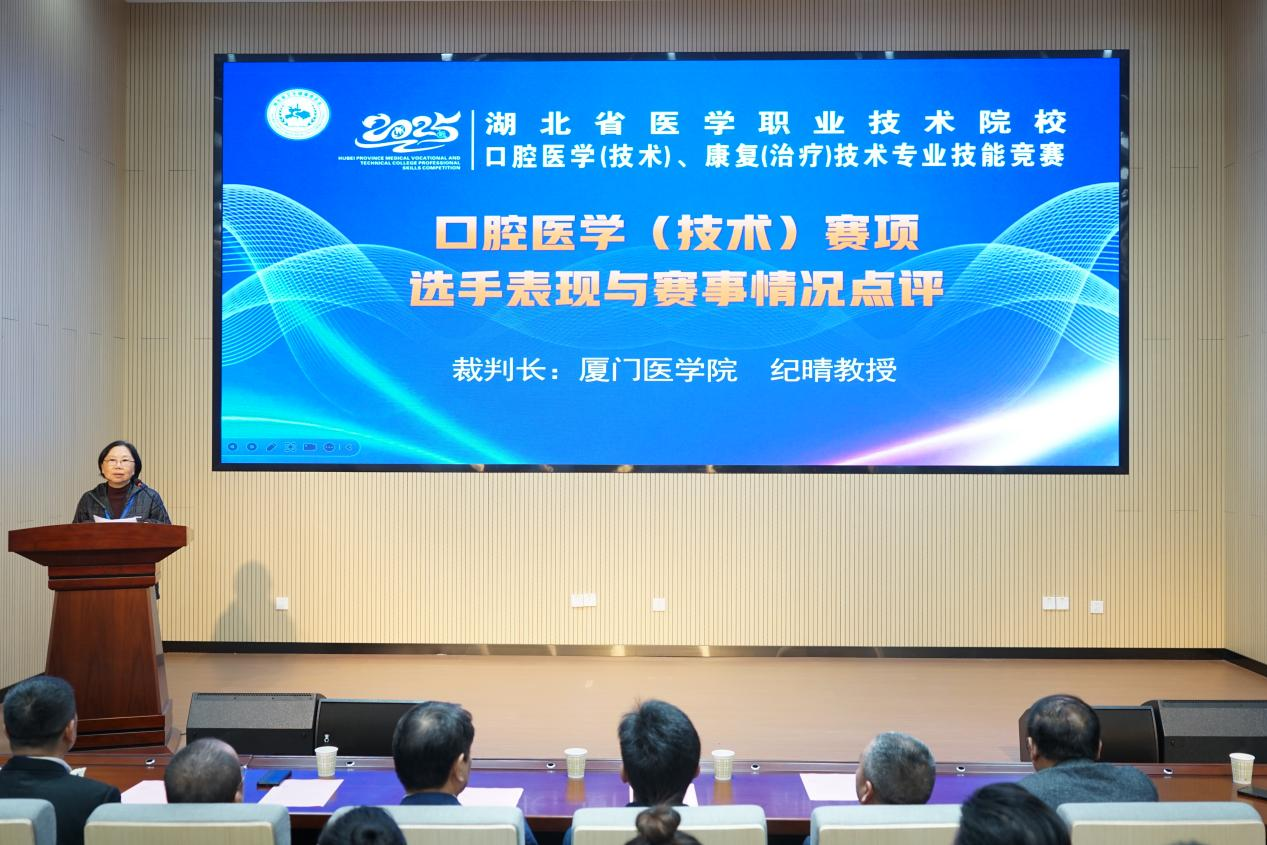 闭幕式由襄阳职业技术学院医学院院长张家忠主持。口腔医学(技术)赛项裁判长纪晴教授指出部分选手存在一定的体位问题,并强调了安全底线。