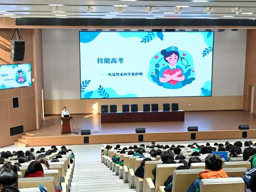 为进一步拓宽同学们的职业视野,活动特别设置多专业联合推介环节。护理助产专业教师梅运飞以《守护生命,预见未来》为题,既对专业核心内容展开详实讲解,又深入解读技能高考培训相关政策,生动展现出该专业的核心价值与发展前景。医学影像技术专业教师杨亚振、药学专业张海福博士、医学检验技术专业张强翔博士,以及康复治疗技术专业主任王思雨也相继登台,分别围绕各专业的培养目标、课程设置、就业方向及行业发展趋势进行精炼介绍,为护士学校的同学们勾勒出医疗卫生领域广阔多元的职业发展蓝图。