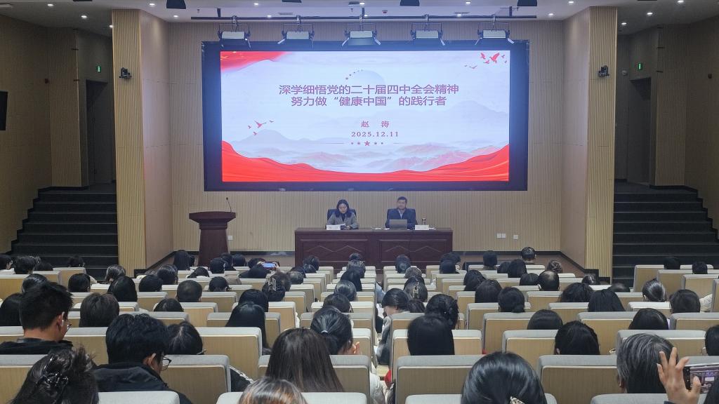 深学细悟凝心聚力奋力谱写医学教育与健康中国新篇章12月11日,学校党委副书记赵涛在医学院同济楼一楼报告厅,为医学院全体教职工及部分学生代表作题为《深学细悟党的二十届四中全会精神,努力做新时代“健康中国”的践行者》的专题辅导报告。报告会由医学院党总支书记何娟主持。